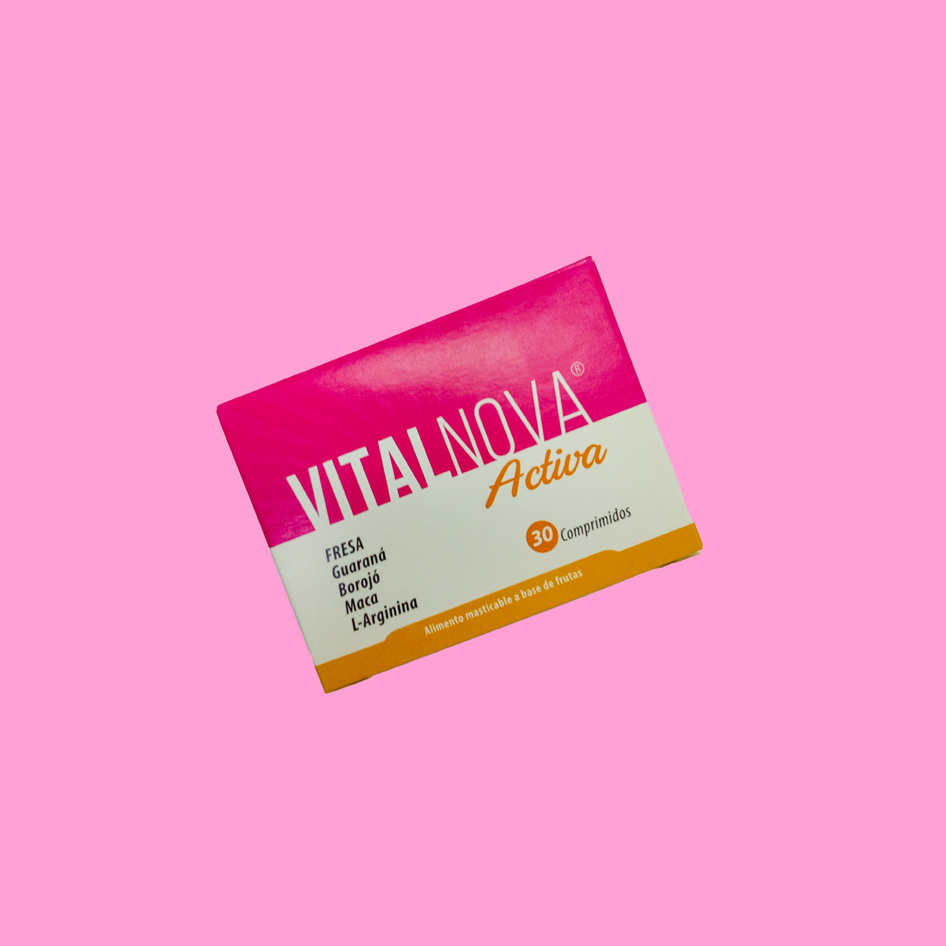 Descubre el poder de VitalNOVA Activa, el complemento alimenticio diseñado especialmente para mujeres que buscan un impulso natural de energía y bienestar integral. En cada envase de 30 comprimidos masticables, encontrarás una poderosa combinación de ingredientes naturales como fresas, Borojó, Maca, Guaraná y L-Arginina, que trabajan en sinergia para mejorar tu energía física y emocional, apoyando tu vitalidad diaria y potenciando tus relaciones.