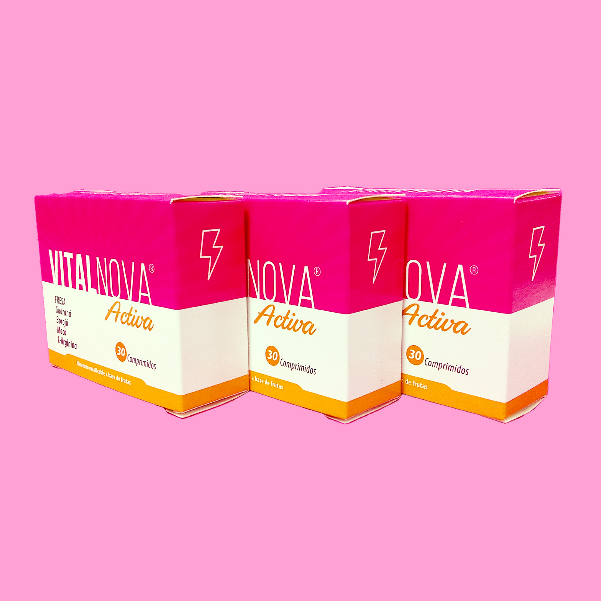 Descubre el poder de VitalNOVA Activa, el complemento alimenticio diseñado especialmente para mujeres que buscan un impulso natural de energía y bienestar integral. En cada envase de 30 comprimidos masticables, encontrarás una poderosa combinación de ingredientes naturales como fresas, Borojó, Maca, Guaraná y L-Arginina, que trabajan en sinergia para mejorar tu energía física y emocional, apoyando tu vitalidad diaria y potenciando tus relaciones.